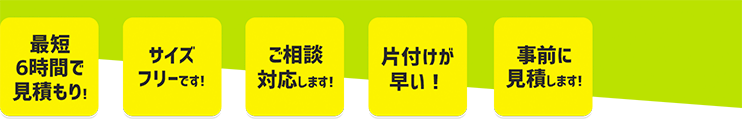 - とても賑やかに作業をしてくれたので気軽さがうまれお願いしやすかったです。そしてチームワーク抜群。時間も予定通り行ってくれましたし、不用品もすっきり捨てる事ができました。悪い点は見つかりませんでした。YUTORI無料クーポンは楽しみに使わせていただきます。(浜松市)
